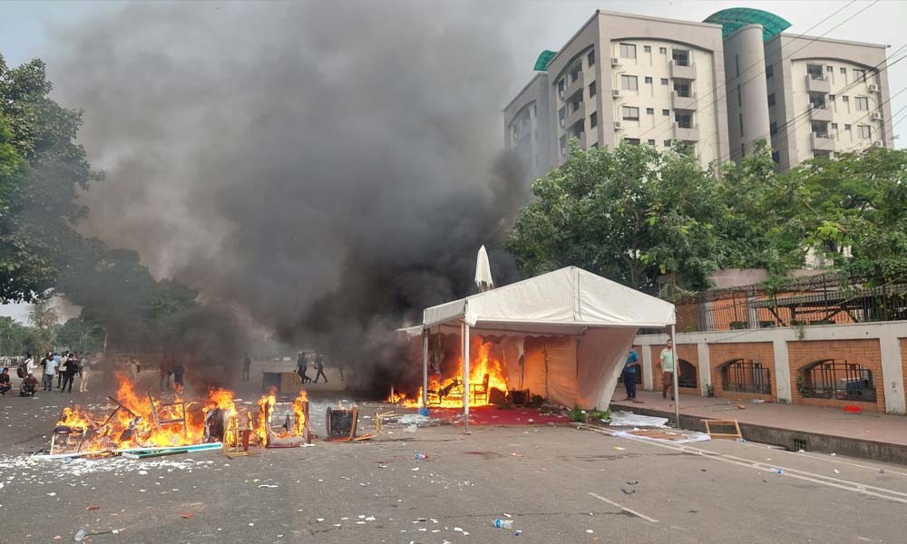 জুলাই সনদ স্বাক্ষর অনুষ্ঠান ঘিরে পুলিশের সঙ্গে জুলাই যোদ্ধাদের সংঘর্ষের পর মানিক মিয়া এভিনিউয়ে পুলিশের ব্যারিকেট একত্রিত করে আগুন ধরিয়ে দিয়েছেন আন্দোলনকারীরা। এতে ওই সড়কে যান চলাচল বন্ধ আছে। বর্তমানে পুরো এলাকা রণক্ষেত্রে পরিণত হয়েছে। জুলাই সনদ স্বাক্ষর অনুষ্ঠানকে কেন্দ্র করে মানিক মিয়া এভিনিউয়ে সেচ ভবনের সামনে তৈরি করা অস্থায়ী তাঁবুতেও আগুন ধরিয়ে দিয়েছেন আন্দোলনকারীরা।
