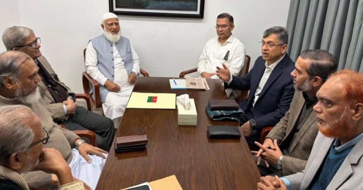 বিএনপির ভারপ্রাপ্ত চেয়ারম্যান তারেক রহমানের সঙ্গে সাক্ষাৎ করেছেন বাংলাদেশ জামায়াতে ইসলামীর আমির ডা. শফিকুর রহমান। বৃহস্পতিবার (১ জানুয়ারি) সন্ধ্যা ৭টার দিকে গুলশানে বিএনপি চেয়ারপারসনের কার্যালয়ে যান জামায়াত আমির। সেখানে তারেক রহমানের সঙ্গে আরও ছিলেন বিএনপি মহাসচিব মির্জা ফখরুল ইসলাম আলমগীর ও স্থায়ী কমিটির সদস্য সালাহউদ্দিন আহমেদ।