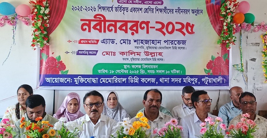 কলাপাড়া (পটুয়াখালী)প্রতিনিধি।। পটুয়াখালীর কলাপাড়ায় মুক্তিযোদ্ধা মেমোরিয়াল ডিগ্রী কলেজে একাদশ শ্রেণির শিক্ষার্থীদের নবীনবরন অনুষ্ঠান অনুষ্ঠিত হয়েছে। বৃহস্পতিবার বেলা ১১ টার দিকে কলেজ মিলনায়তনে এ অনুষ্ঠানের আয়োজন করা হয়।