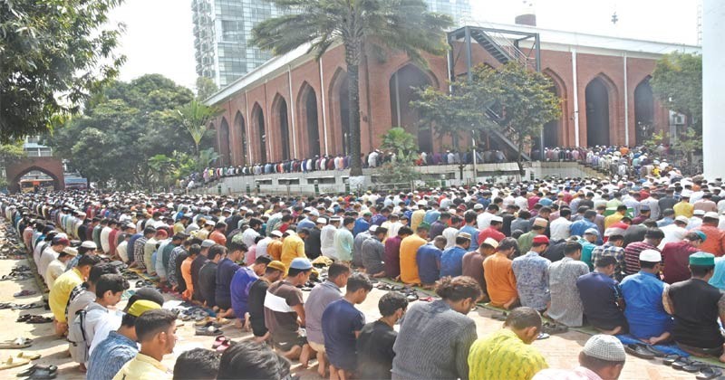 এদিন প্রখর রোদ উপেক্ষা করেই মসজিদে সমবেত হন অনেকে। রাজধানী অন্যতম বৃহৎ জামাতটি অনুষ্ঠিত হয় বায়তুল মোকাররম মসজিদে। বেলা সোয়া ১২টার পর থেকেই মুসল্লিদের ঢল নামে মসজিদে। এসময় দূর-দূরান্ত থেকে নামাজ পড়তে আসেন মুসল্লিরা। মসজিদের ভেতরে জায়গা সংকুলান না হওয়ায় সিঁড়ি ও রাস্তায় দাঁড়িয়েও নামাজ আদায় করেন অনেকে।উল্লেখ্য, জুমার নামাজ শেষে দেশ ও মানুষের মঙ্গল কামনায় দোয়া মোনাজাত অনুষ্ঠিত হয়।