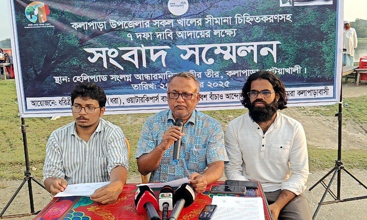 সংবাদ সম্মেলনে লিখিত বক্তব্যে ধরিত্রী রক্ষায় আমরা (ধরা)” কলাপাড়া উপকূলীয় অঞ্চল সমন্বয়কারী মেজবাহউদ্দিন মাননু বলেন, খাল-নদী বেষ্টিত সাগরঘেষা কলাপাড়া উপজেলার অধিকাংশ মানুষের প্রধান পেশা কৃষি ও মৎস্য শিকার। এই অঞ্চলের কৃষিকাজ, নিত্যদিনের প্রয়োজনীয়তা ও জীবিকার অন্যতম উৎস খালের পানি। কিন্তু দীর্ঘদিন ধরে খাল ভরাট, দখল ও দূষণের কারণে মিঠা পানির তীব্র সংকট দেখা দিয়েছে।