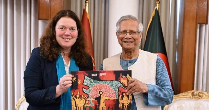 নেদারল্যান্ডসের আন্তর্জাতিক সহযোগিতা বিষয়ক ভাইস মিনিস্টার পাসকাল গ্রোটেনহুইস মঙ্গলবার ঢাকায় রাষ্ট্রীয় অতিথি ভবন যমুনায় প্রধান উপদেষ্টা অধ্যাপক মুহাম্মদ ইউনূসের সঙ্গে সৌজন্য সাক্ষাৎ করেছেন। বৈঠকে কৃষি, বাণিজ্য ও বিনিয়োগ, প্রযুক্তি, যুব উন্নয়ন এবং তরুণ ও নারী উদ্যোক্তাদের জন্য সামাজিক ব্যবসা তহবিল গঠনের সম্ভাবনাসহ বিভিন্ন ক্ষেত্রে সহযোগিতা সম্প্রসারণের বিষয়ে আলোচনা হয়।