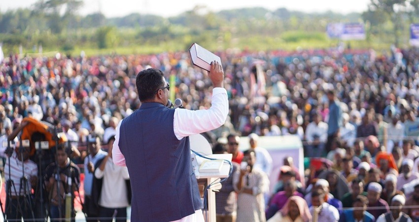 এর আগে শীতের সকালে তীব্র কুয়াশা উপেক্ষা করে কুষ্টিয়া ও এর আশেপাশের জেলা থেকে খণ্ড খণ্ড মিছিল নিয়ে অনুষ্ঠানস্থলে সমবেত হতে থাকেন হাজারো নেতাকর্মী ও ধর্মপ্রাণ সাধারণ মানুষ। সকাল গড়াতেই কানায় কানায় পূর্ণ হয়ে ওঠে বিশাল সভাস্থল।