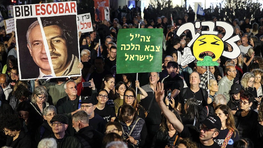 ইসরায়েলের প্রধানমন্ত্রী বেনিয়ামিন নেতানিয়াহু এবং তাঁর সরকারের পদত্যাগের দাবিতে তেল আবিবে হাজারো মানুষ বিক্ষোভ করেছেন। শনিবার রাতে অনুষ্ঠিত এই বিক্ষোভে বিভিন্ন বয়সী মানুষ অংশ নেন। আন্তর্জাতিক সংবাদ সংস্থা এএফপি জানিয়েছে, সরকারের নীতি, যুদ্ধ পরিস্থিতি এবং সাম্প্রতিক রাজনৈতিক সিদ্ধান্তের বিরুদ্ধে জনঅসন্তোষ থেকেই এই আন্দোলনের সূত্রপাত।